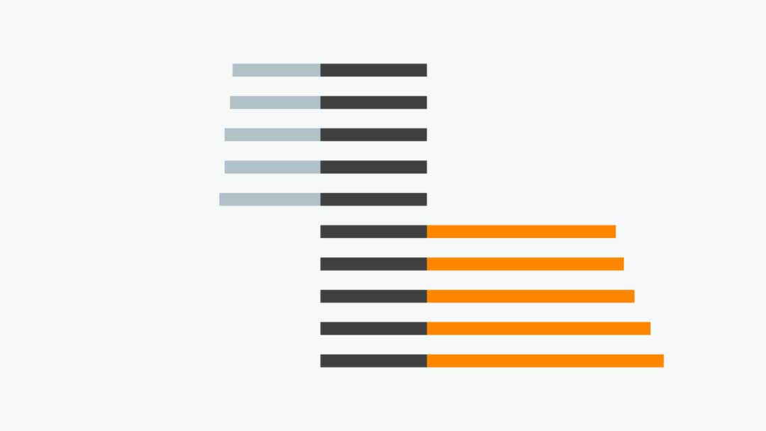 把條形上下錯開,并將小標題放大加粗置于兩旁,加上高透明度的箭頭,突出強化對比效果: